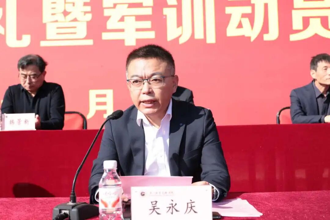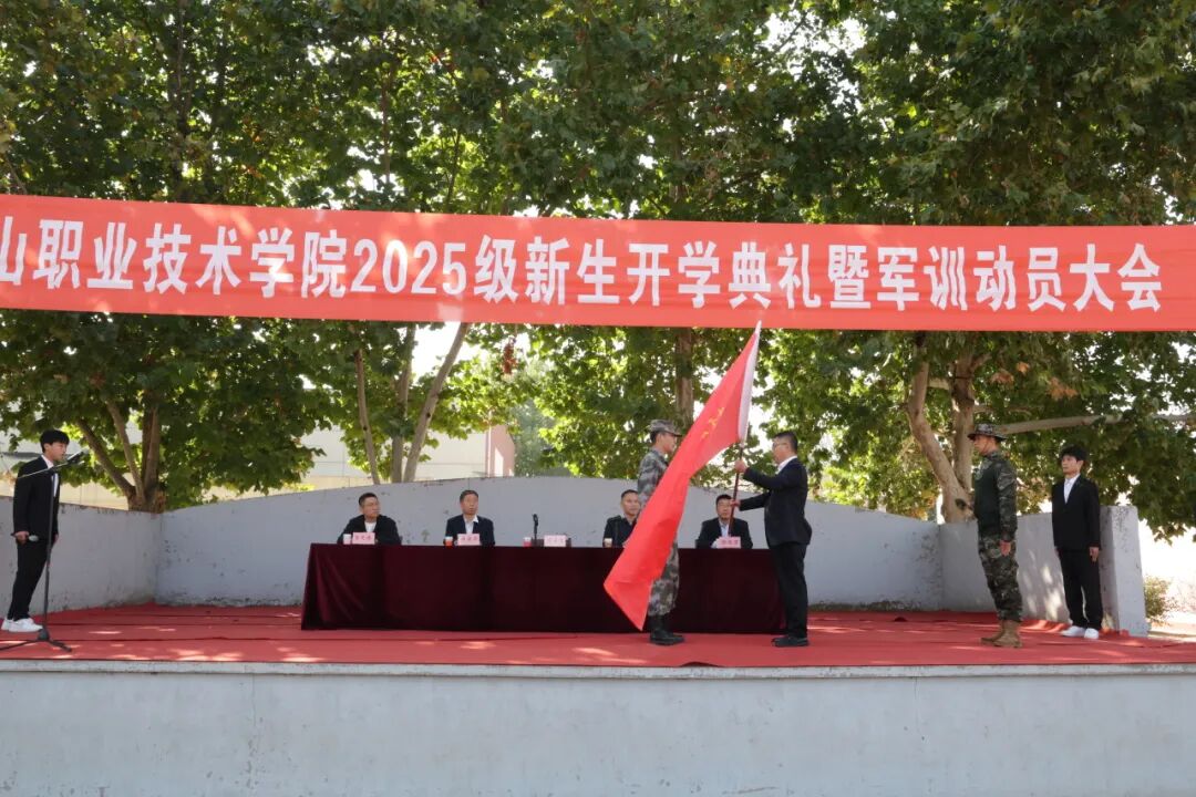 副院长吴永庆在韩城校区授军训团团旗,宣布军训开始